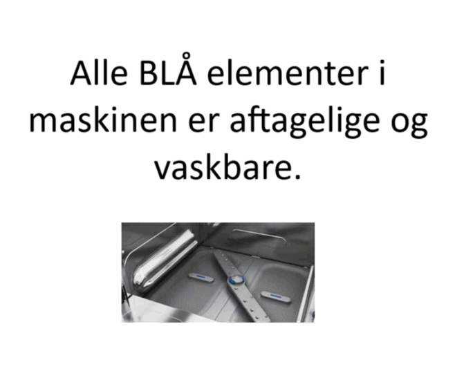 To make it much easier for the user, all parts that are blue in the machine are removable and can be rinsed/cleaned during the washing process. Blue was chosen because this color is also clear for people with color vision challenges.